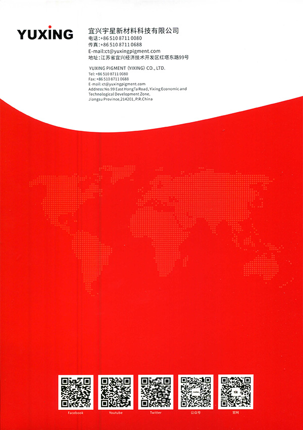 地 址:江苏宜兴经济技术开发区红塔东路99号 联系人:销售总监 陈涛 电 话:18795631666 邮 箱:info@yuxingpigment.com