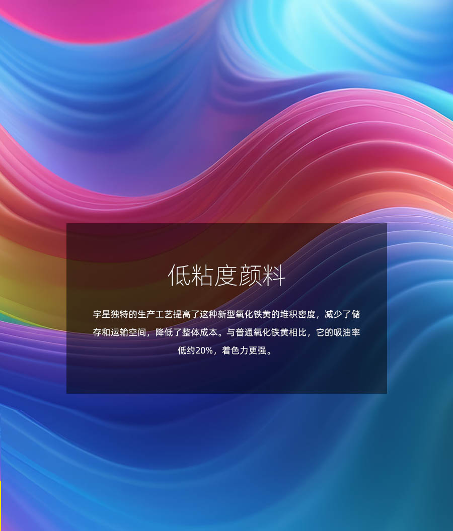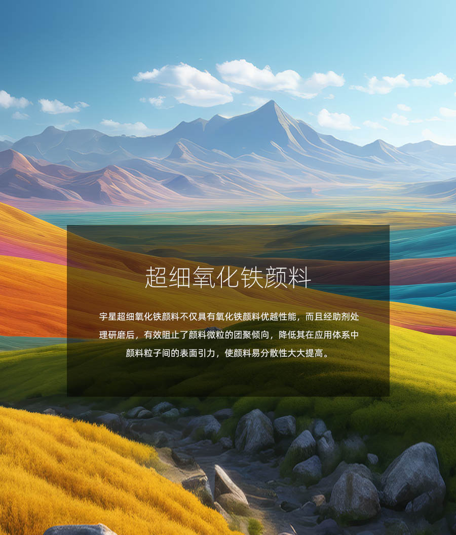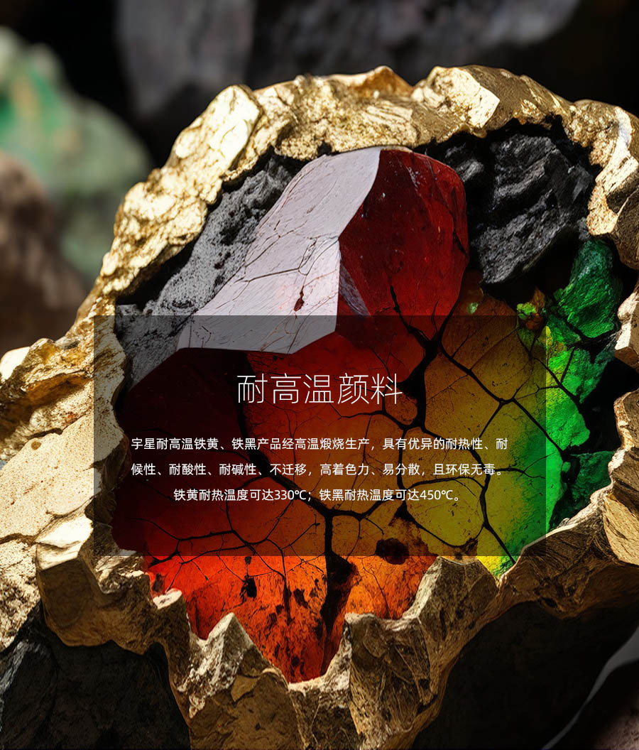 宇星,国家级专精特新“小巨人”企业、国家高新技术企业,历经40多年的发展,目前年产量达到20万吨。宇星产品涵盖氧化铁红、黄、黑、棕、绿、橙、蓝等,宇星产品不仅光泽鲜艳、性能稳定,而且具有独特的耐候性和耐腐性,畅销世界各地。